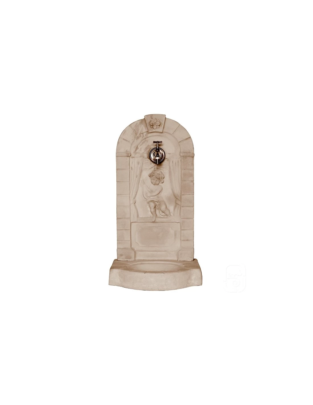 Fontaine murale aux angelots avec nécessaire de raccordement et robinet.