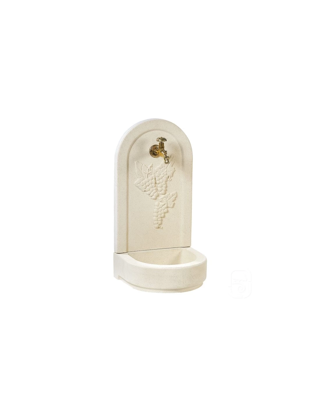 Fontaine murale « raisins » ton blanc avec nécessaire de raccordement et robinet.